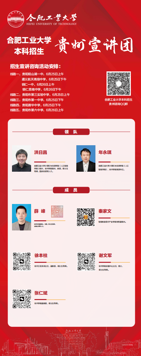 6月25日~27日,yl7703永利官网招生宣传工作小组和本科生院领导线下参加了贵州省升学在线和多所高中举办的宣传活动,在学院教师少手的情况下,先后走进了贵州省8所优质生源高中(贵阳观山湖一中、遵义航天高级中学、铜仁一中、铜仁思南中学、贵阳市第一中学、贵阳市第三实验中学、贵阳清华中学、贵阳市第六中学)和合肥市两所中学(合肥四中、合肥六中),与考生和家长面对面答疑解惑。