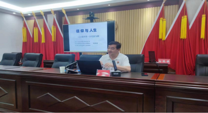 为庆祝中国共产党成立102周年,激励全镇党员干部弘扬伟大的建党精神,激发奋进动力,6月29日,省党史宣讲团成员、我校best365在线官网登录入口院长毛传清教授受白鹤镇党委邀请,赴该镇给党员干部上了一堂“信仰与人生”专题党课。学校党委书记杨知勤、组织部副部长肖玉、驻村工作队,白鹤镇党委书记蔡建宇、党委副书记、镇长唐盛波、党员代表参加了本次讲座。