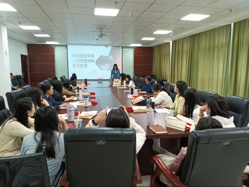 其后,学院党支部书记曹卓,以《高校违反中央八项规定精神警示教育》为题,给大家上了一堂生动的党课。